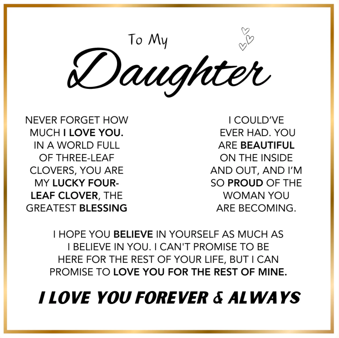 Let your daughter carry your love and blessings with her always.